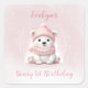Square Sticker in the soft pink and white with a cute polar bear for baby girl's winter 1st or any Birthday. Easily personalise the text. - Kate Eden Art