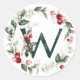 This set of 20 small 1.5" round monogram envelope seals feature a bright red and forest green winter berry wreath with a decorative sage green monogram initial.