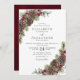 This elegant winter-themed wedding invitation is decorated with Christmas watercolor greenery and red holly berries, pine cones and evergreen branches. On the back is a burgundy watercolor texture. Find matching rsvp and enclosure cards, as well as other matching products, in the collection. Message me through Zazzle Chat if you need design tweaks or more matching products.