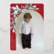 Elegant Christmas photo card. Says Merry Christmas in real foil. The photo is surrounded by an arched dome shaped red frame embellished with green winter berries.