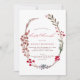 A beautiful winter/holiday bridal brunch invitation featuring a watercolor horse shoe wreath of winter berries in red, blue and brown, with green leaves. "bridal brunch" is in red modern calligraphy style font.