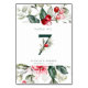 This delicate watercolor greenery border has traditional Christmas colours, forest green, olive green and cranberry red on bright white. The table number is featured in the centre in forest green with red berries and greenery. The remaining wedding details are directly below. All text can be edited to suit the needs of your event. Coordinates with other items from the Winter Berry Collection.