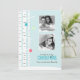 Adorable custom holiday card features a beautiful vector illustration of a whimsical winter scene of christmas decorations hanging on birch trees on a beautiful light blue background. Personalise with your family pictures and a message of your choice.