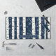 Blue and White Winter Birch Tree and Snowflakes Pattern Desk Mat and Custom Name