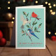 Original illustration of winter birds resting in holly branches. Customise the interior as desired, colours and photo optional.