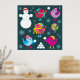 Winter Birds Playing in Snow with Snowman Poster