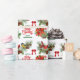 On this pretty personalised Holiday wrapping paper are two winter birds, a red cardinal and a gold finch, perched in a pine bough. Along with the bird images is a red poinsettia bouquet, and red bows are scattered throughout. The red and green text says "We wish you a MERRY CHRISTMAS" with your custom text in green below it. This paper looks festive in either the matte or the semi-glossy finish.