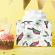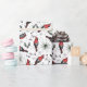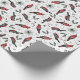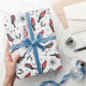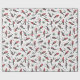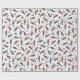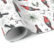 This festive nature holiday wrapping paper features fun pattern of hand-drawn red cardinal birds, pine, red holly berries and tiny stars, all against an elegant white background.