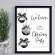 The greeting and event details are stacked on the right in a stylish mix of script and serif fonts, creating a clean and modern layout that blends elegance with playful holiday charm. Perfect for casual family gatherings, office parties, or formal seasonal events, this sign sets a festive tone the moment guests arrive.
