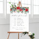 Let your guests know the timeline of your event with this customisable order of events sign. It features a watercolour floral garland of poinsettia flowers, red roses, pinecones and greenery accents. Personalise by adding your details. This floral wedding sign is perfect for winter weddings. Matching items are available.
