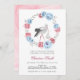 Winter Blue And Blush Pink Floral Baby Shower Invitation. The stork is surrounded by a wreath of watercolor peonies. Matching items available.