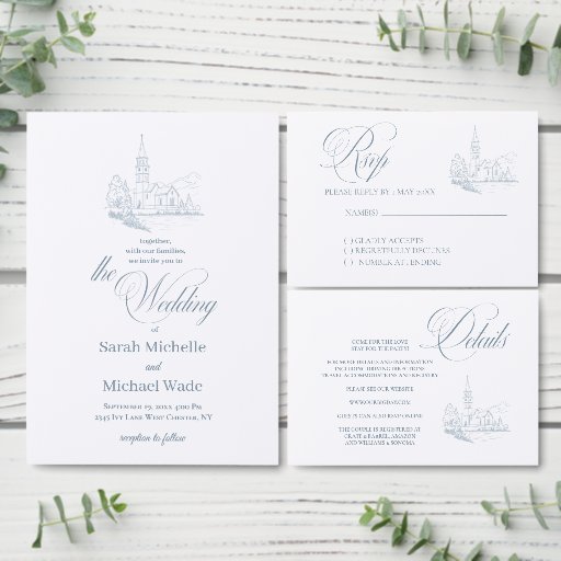 Winter Blue Church Calligraphy Wedding SuiteDesigned by Phyllis Waugh