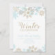 blue and gold snowflake winter birthday invitation.