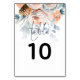 Winter Blue Peach Florals Script Wedding. Table is set in a handwriting style script and your table number beneath with frosty blue and peach wintery festive florals bordering the top behind a tinted gradient with the text partially overlaid onto it. Easily personalise the number. The same design is on the other side and will update simultaneously as you make your change to the number.