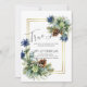 Blue Thistles, Pine cones, Eucalyptus leaves, winter wonderland wedding themed wedding invitation , part of a larger collection which includes invitations save the dates rsvp's bridal party gifts etc. For Christmas or winter wedding planning guide theme ideas and more visit weddingdesignchic.com.