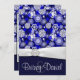 Winter Blue & White Snowflake Wedding Invitations - each snowflake wedding invitation features a printed wrap around white ribbon with a diamond round buckle embellishment for an added feminine touch. Below the printed ribbon, the bottom half is winter navy blue with flecks to make the text stand out. Above the ribbon on the top half of each invite showcases and elegant print of white, grey, & electric blue snowflakes. The design wraps around to the back and features the same design with an elegant text box shaded in white to make text pop out. The text box also allows the graphics to peek through for added flair. The paper type is set to basic invitation stock; however, you can change the paper type to linen, felt or metallic under the orange customise button below the invite demo. Each invitation comes with a white envelope.
