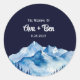 Winter Blue White Snowy Mountains Wedding Classic Round Sticker