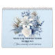 Beautiful blue and white watercolor flowers on thirteen images in this calendar for any year stated.