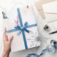 Winter Blush Baby Shower Wrapping Paper with pine trees and snowflakes.