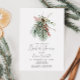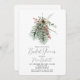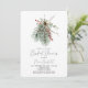 Celebrate the bride-to-be with this minimalist rustic winter foliage bridal shower invitation featuring a watercolor floral arrangement of pine leaves, red berries and eucalyptus greenery. With elegant handwriting calligraphy.