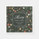 Celebrate the season in style with these personalised Christmas cocktail napkins. Featuring a dark, sophisticated botanical backdrop of greenery, pinecones, baubles, bows and berries, the design is beautifully accented with your family name and holiday greeting in an elegant ticket corner square frame. Perfect for cocktail hours, festive gatherings, or Christmas dinner parties, these napkins add both charm and personalisation to your seasonal entertaining. A stylish way to elevate your holiday table and make every toast feel extra special.