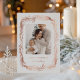 Share a warm, subtle greeting this season with a photo card featuring a delicate botanical wreath design. Your cherished family photo is elegantly framed by a beautiful border of winter foliage, all glimmering in stunning rose gold foil. The heartfelt "Happy Holidays" script below your picture also shines in matching rose gold foil, creating a truly soft, romantic, and modern holiday statement.