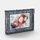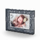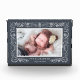 Display a sweet photo of your baby girl in this freestanding acrylic photo block. Design features your horizontal/landscape orientated photo surrounded by delicate leaves and branches in chic, elegant midnight blue-grey and white. Personalise with baby's name and date of birth at the bottom.