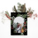 Elegant rustic Christmas greeting features a festive winter botanical greenery and berries photo frame with arch shape photo, beautiful real foil text on a black background, and a simple full photo back of the card. Send holiday greetings to family and friends with this gorgeous photo card!