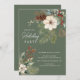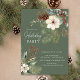 This elegant Christmas holiday party invitation features a beautiful pine branch, holly berries, white flower and pinecone arrangement set on a green background. The invitation is perfect for inviting your friends and family to a festive holiday gathering. The overall design is festive and sophisticated, and the invitation is sure to impress your guests.
