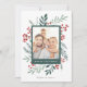 This completely customisable 1- photo holiday card features elegant hand-painted watercolor wintery botanicals that beautifully frame your photo. Comes with a matching pattern on the back. Sure to make a strikingly stylish and memorable statement this holiday season! This design is part of a collection. Original artwork by designer Nicole Barreto.