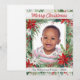 This elegant Christmas card features a botanical "frame" of winter poinsettias, greenery and red berries. At the top is the greeting 'Merry Christmas' in stylish script typography. Personalise the card with a favourite photo and your own text.