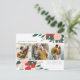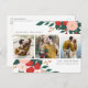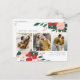 Wish your family and friends a happy holiday with our festive Winter Botanicals holiday photo postcard. The holiday postcard displays 3 of your photos on the front framed in white with bouquets of red and pink painted flowers with green leaves and gold accents. Personalize the front by adding the a custom greeting, your name and the current year. The back features space for your return address and custom message.