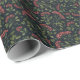 Elegant botanical patterned wrapping paper matches our Winter Bouquet collection, with an allover pattern of green watercolor botanical leaves and tiny red flower blossoms on a rich, dark navy blue background.