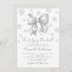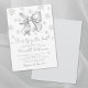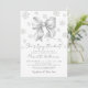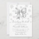 This elegant and timeless bridal shower invitation features a soft white and grey watercolor bow at the top, giving it a chic and wedding-inspired feel. “She’s tying the knot!” is displayed in a mix of grey script and serif fonts, creating a refined and romantic look. Light grey watercolor snowflakes gently fall from the top, reaching about halfway down the design for a soft, wintry touch.