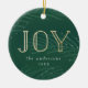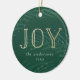 Add a personalised touch to your tree with our Winter Branches holiday ornament. The Christmas ornament features "Joy" in faux gold foil lettering against a green watercolor background with pine branches and snow. Personalise the ornament by adding your name, the year, and a photo on the back.