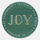 Dress up your holiday envelopes with our Winter Branches holiday return address labels. The festive stickers feature the word "Joy" in faux gold foil lettering with pine branches and snow against a green background. Personalise the stickers by adding your name and address.