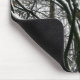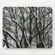 A mouse pad with a photo of snowy branches creating an interesting almost abstract design.