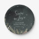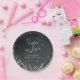 Add a touch of winter romance to your bridal shower or holiday celebration with these Snow in Love bridal shower paper plates. Adorned with watercolor pine greenery, pinecones, and delicate snowflakes over a deep black watercolor background, these elegant plates elevate your table décor with effortless charm. Perfect for winter gatherings, bridal showers, and seasonal brunches, each plate is customizable with your event details for a coordinated and memorable presentation.