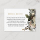 Elegant winter white ivory flowers border with seasonal branches, foliage and leaves bridal shower recipe request enclosure card with a chic modern gold typography script.