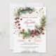 Winter bridal shower watercolor wreath red berries invitation