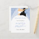 Winter Save the Date postcards with a bride and groom on a blue snowflake background. Easy to use template - just enter the names of the Bride & Groom, along with the wedding date in the space provided. Image © JD Digi Designs
