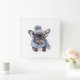 Winter Bulldog Baby in Blue Cap and Scarf Square Wall Clock