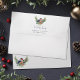 Order these customised envelopes with printed return address to match the winter Bullfinch Christmas cards, featuring a watercolor bullfinch perched on pine greenery, holly leaves, and red berries.