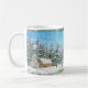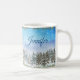 Snuggle up on a snowy Christmas day with a hot cup of cocoa in this mug, which features a snow-covered cabin nestled in the woods among the trees, with snowflakes falling to add to the magical winter wonderland atmosphere. Personalise the name for the perfect thoughtful Christmas stocking stuffer gift.