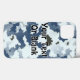 A white, blue and green, digital-style, winter camouflage pattern. Add your own text.