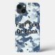 A white, blue and green, digital-style, winter camouflage pattern. Add your own text.