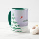 Enjoy your coffee or hot chocolate each Christmas and winter season with my cute pair of cardinal birds flying to greet each other between snow covered evergreen trees against a blue and lavender winter sky filled with falling snowflakes. Personalise it with the provided name template between the cardinal pair, customise it further by having one of the cardinals land on your name :) Season's Greetings!