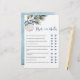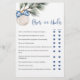 Winter Chinoiserie Bridal Shower Games Card, Christmas Bridal Shower Games Card.