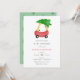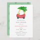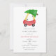 Baby Shower invitation featuring watercolor red car with Christmas tree tied to roof. Personalise with your information or click "click to customise further" to adjust font type, size, colour.