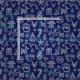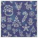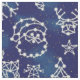This gorgeous Christmas design includes a winter constellation pattern. The blue-and-white design has geometric images of Santa Claus, snowflakes, bells, mistletoe, deer, snowmen, trees, gift boxes, stockings, candy canes, and more.